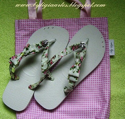 Chinelo customizado com tecido e strass swarovski, a embalagem é uma sacolinha bem bonitinha!!!